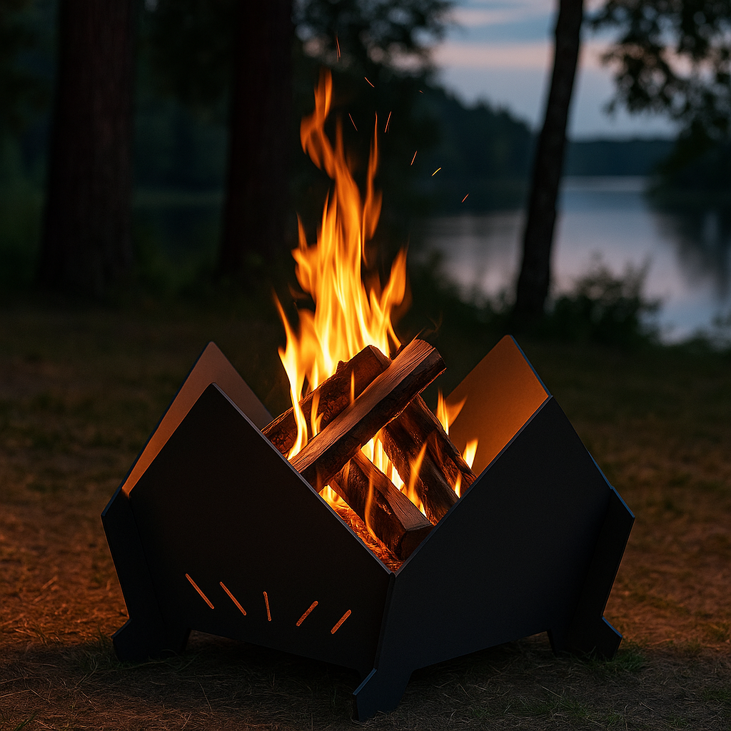 Sleek. Portable. Geometric. The EmberFold Hex pairs modern form with rugged function. Its angular, steel panels assemble in seconds-no tools required. Designed for airflow and efficiency, this flat-pack fire pit delivers standout style and performance anywhere adventure calls.